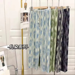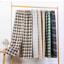 DL-018 Summer New Style Elastic Waist Plaid Pants Thin Canvas Casual Straight Pants ODM Supply